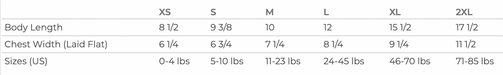 **For animals with larger chests, purchase one size up from weight range.